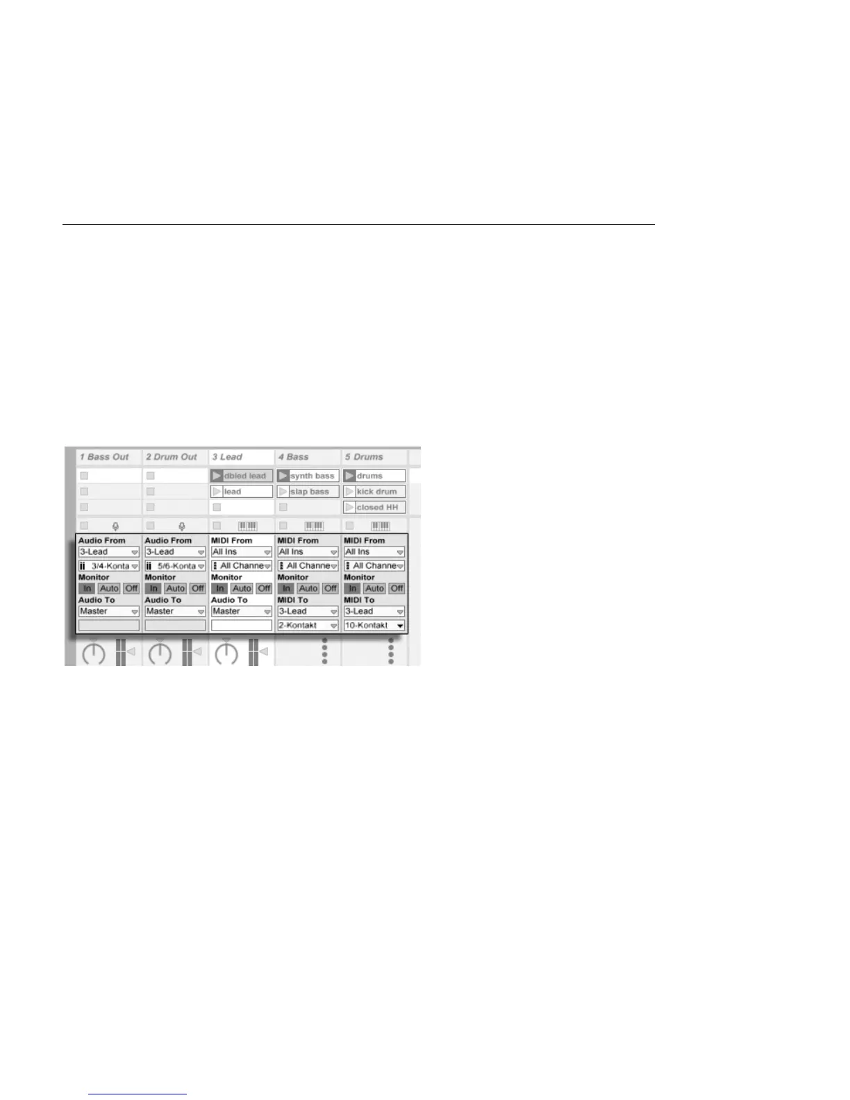 ing the target MIDI channel. Additional audio tracks can then be used to tap the instrument's