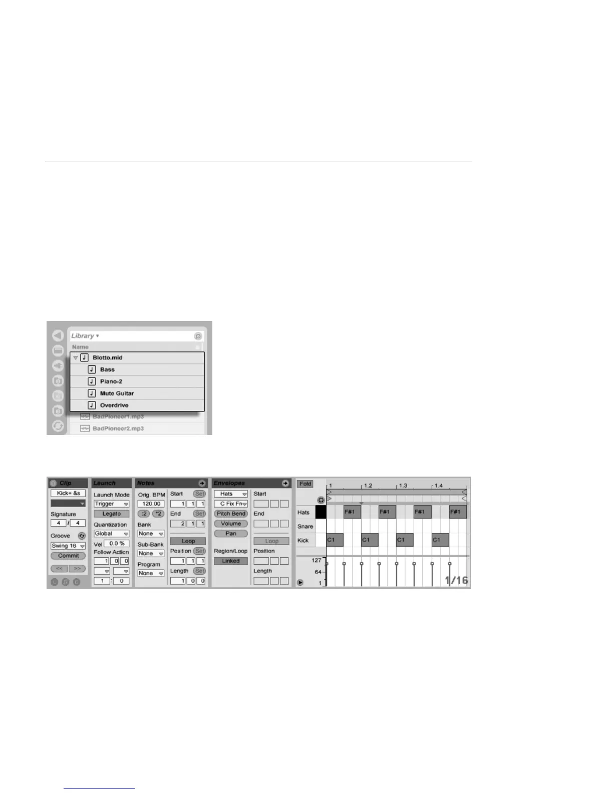 the original le is not referenced thereafter. In the Live File Browsers, a MIDI le appears