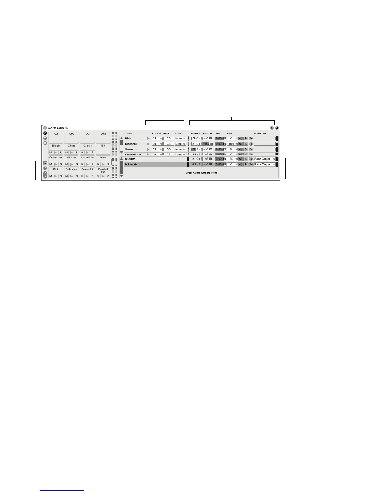 Rack types, Drum Racks also have send sliders. These sliders allow you to set the