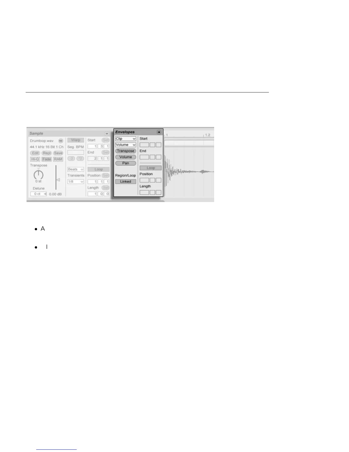 To work with clip envelopes, bring up the Clip View's Envelopes box by activating the