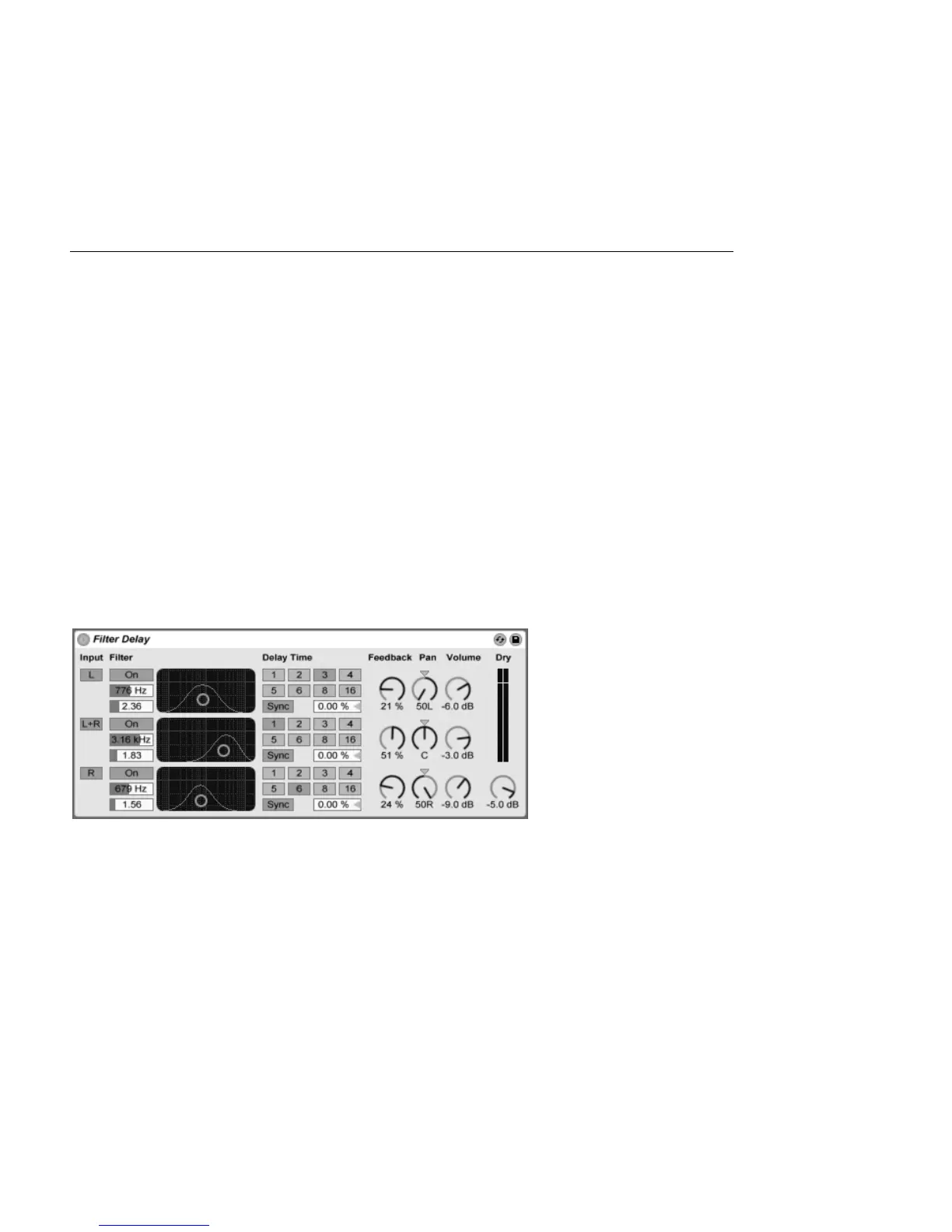 Each of the three delays can be switched on and off independently. The Filter Delay device