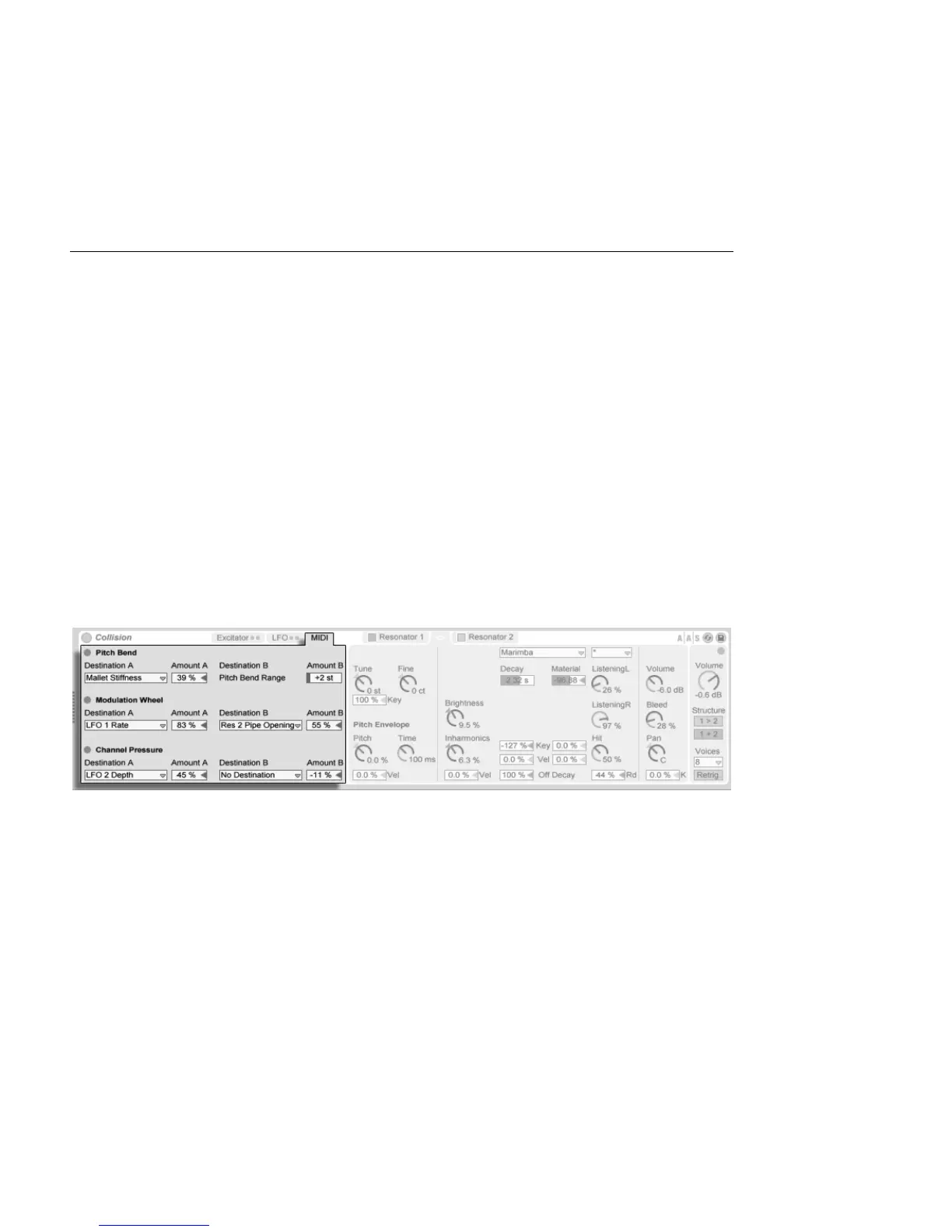 of the modulations is adjusted with the Amount sliders. Note that these modulation amounts