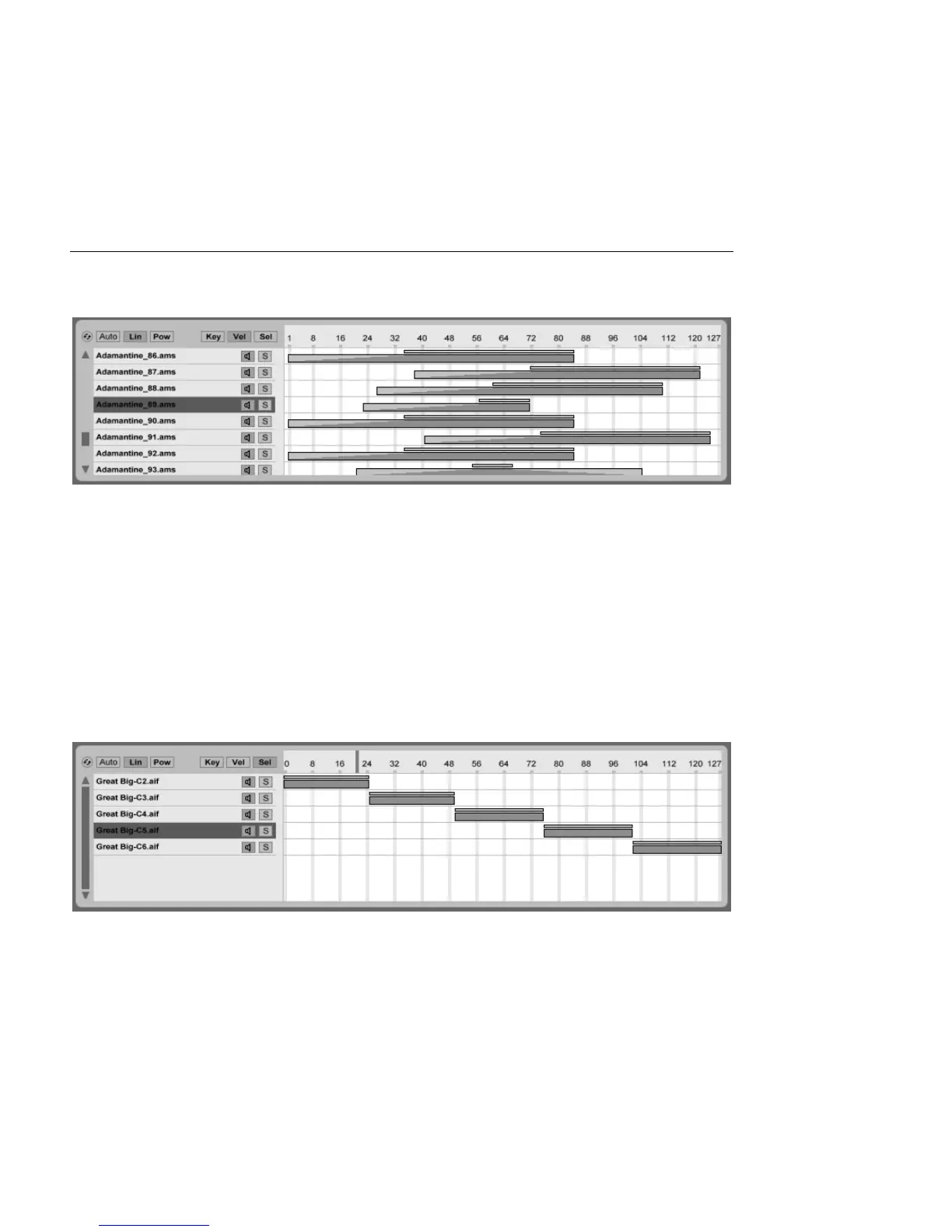 particular kind of MIDI input. Sample Select zones are very similar to the Chain Select Zones