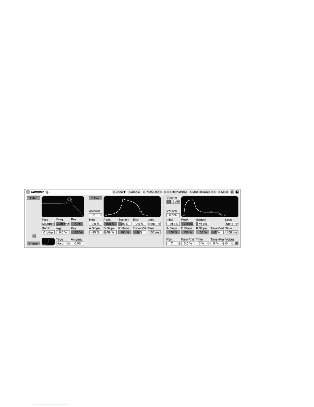 Sampler features a polyphonic lter with an optional integrated waveshaper. The Morph
