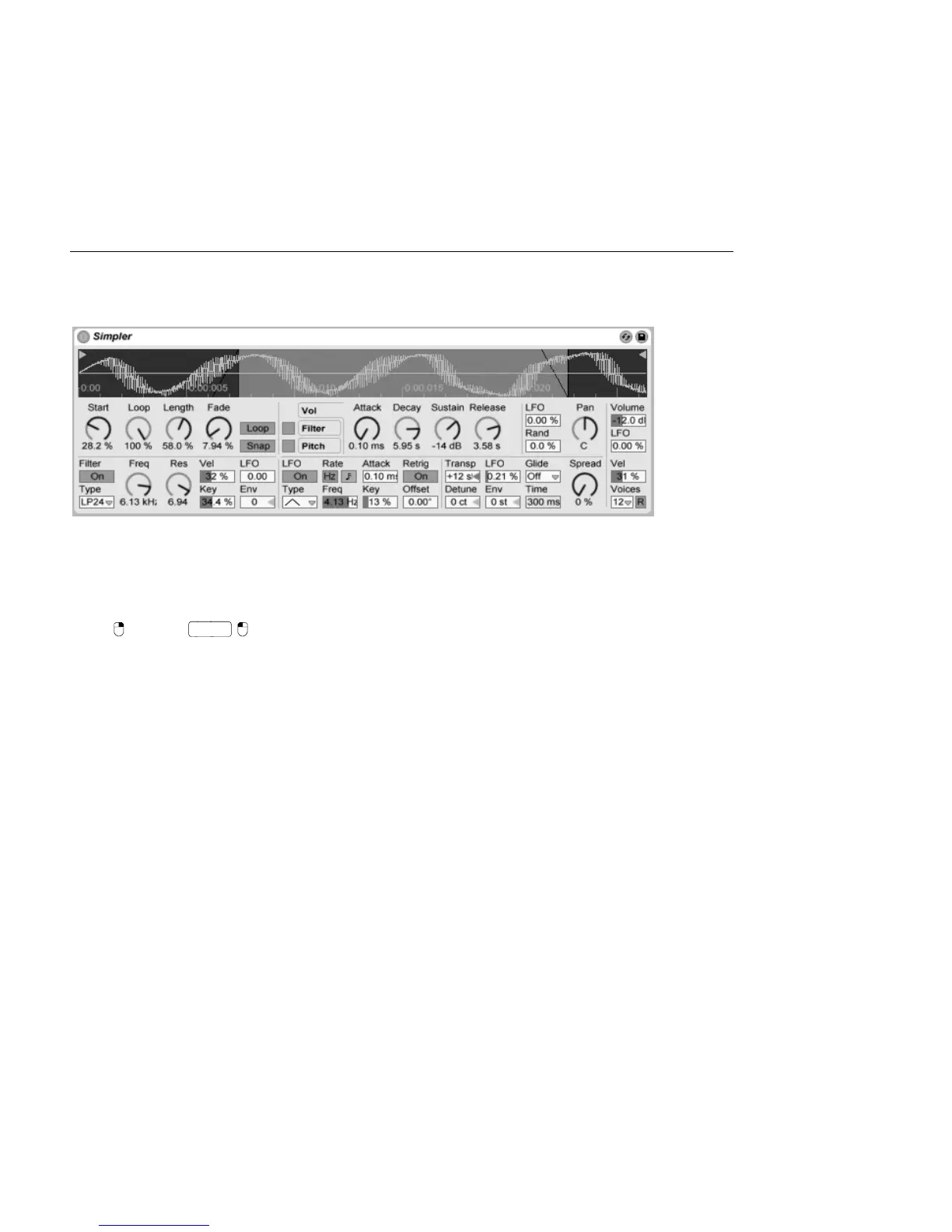synthesizer parameters. A Simpler voice plays a user-dened sample section, which is in