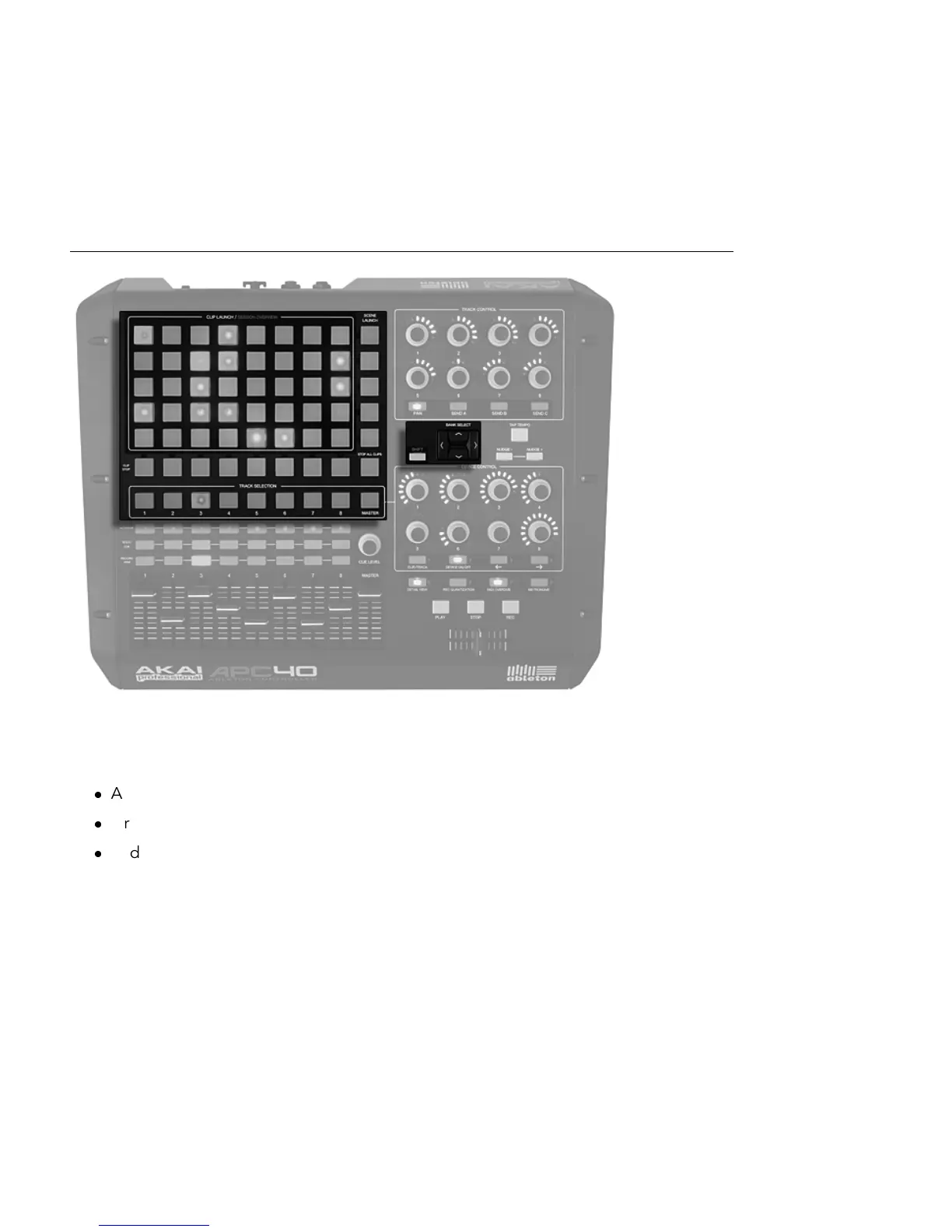 Many aspects of the Live interface are replicated in the APC40. You can stop all music in