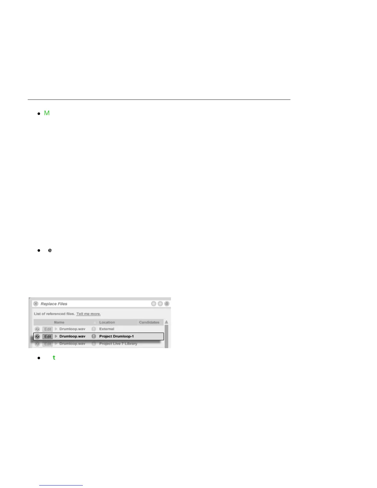 To view a list of the samples referenced by the current Live Set, choose the Manage Files