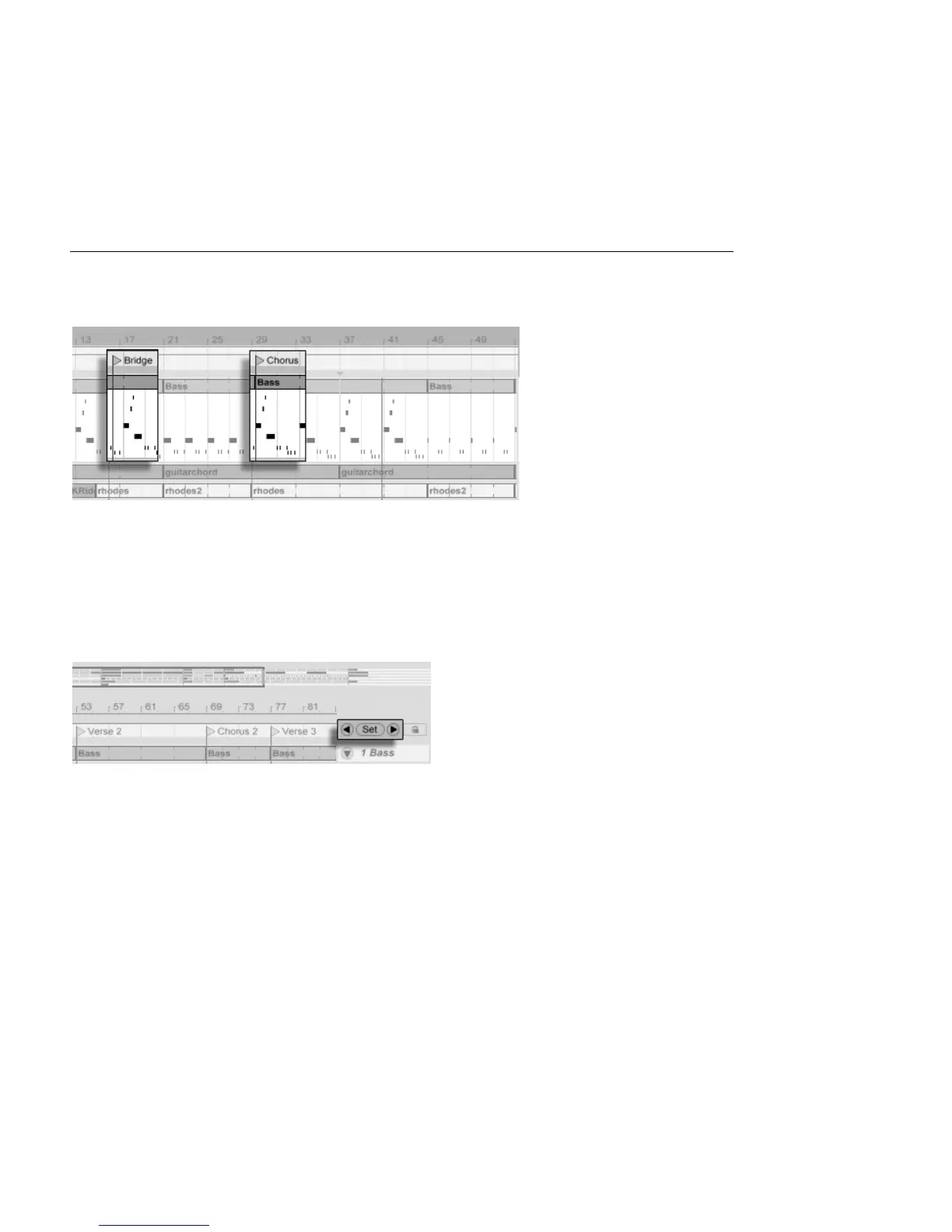 buttons on either side of the Set button. Locators can also be recalled using MIDI/key