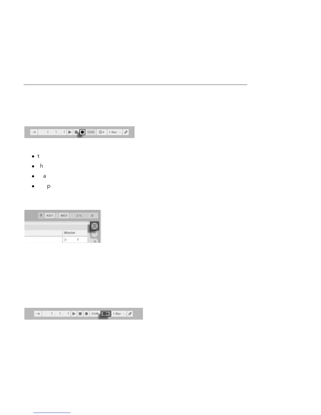 Your Session View playing can be recorded into the Arrangement, allowing for an improvi-