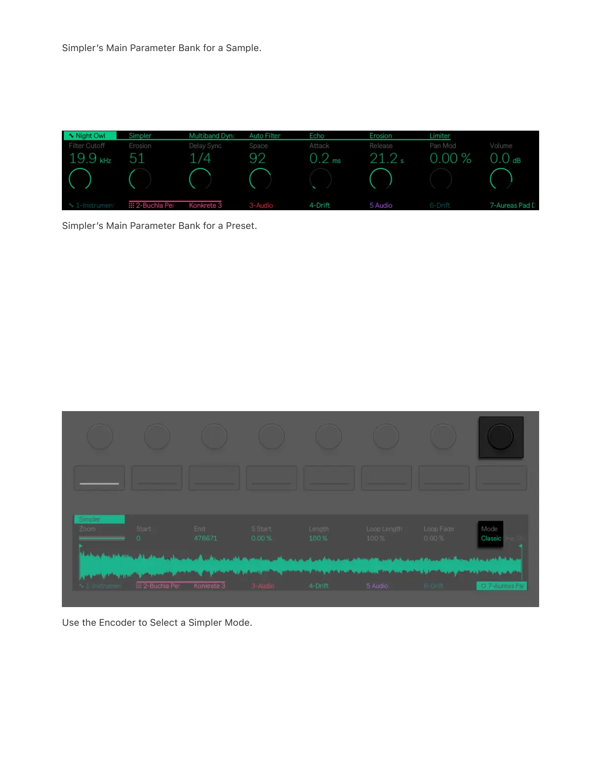 Simpler can be set in one of three modes: Classic, One-Shot, or Slicing.