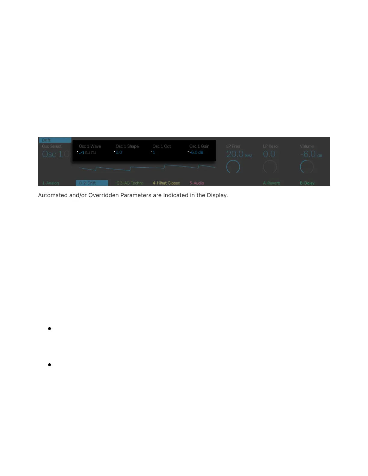 Automated and/or Overridden Parameters are Indicated in the Display.