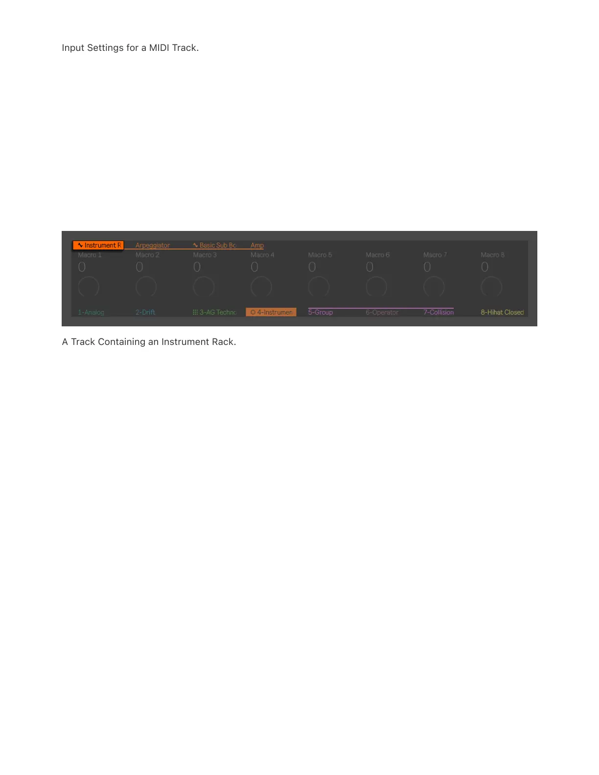 Tracks that contain Instrument or Drum Racks can be distinguished by