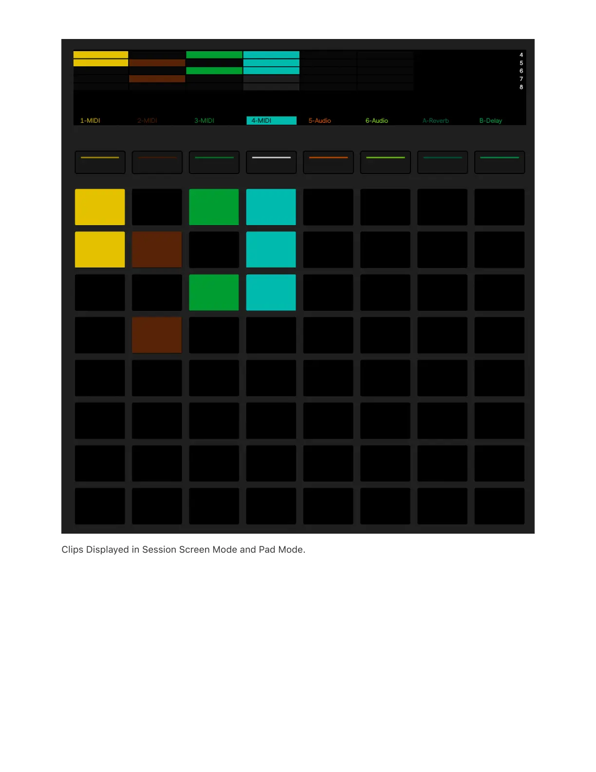 Clips Displayed in Session Screen Mode and Pad Mode.
