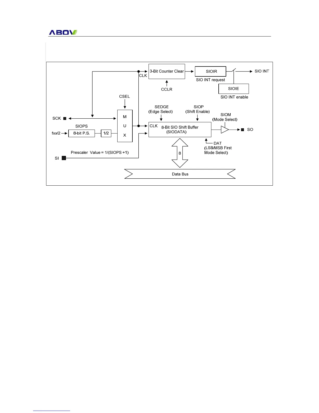 The SIO module can transmit or receive 8-bit serial data at a frequency determined by its