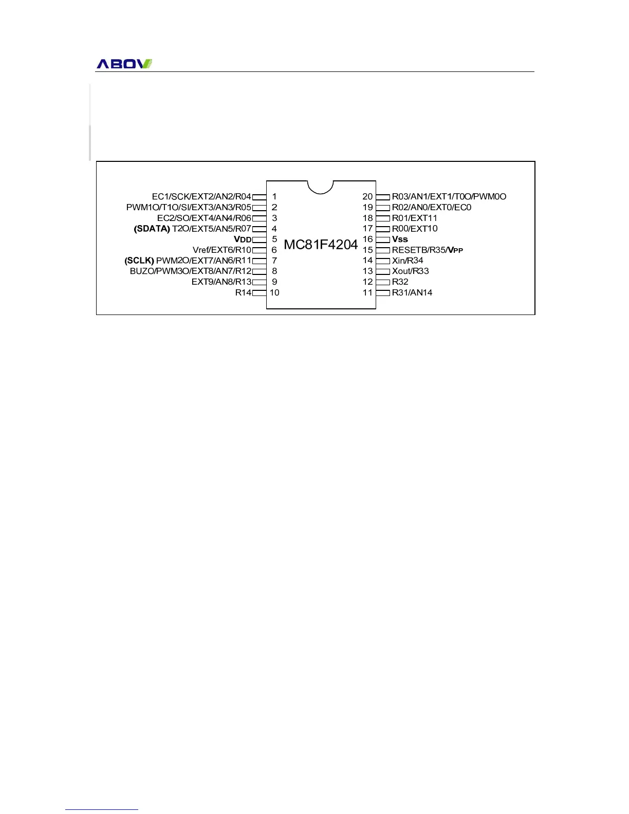 ABOV SEMICONDUCTOR MC81F4204 - 3. Pin Assignment; 3.1 20-Pin Package Pinouts