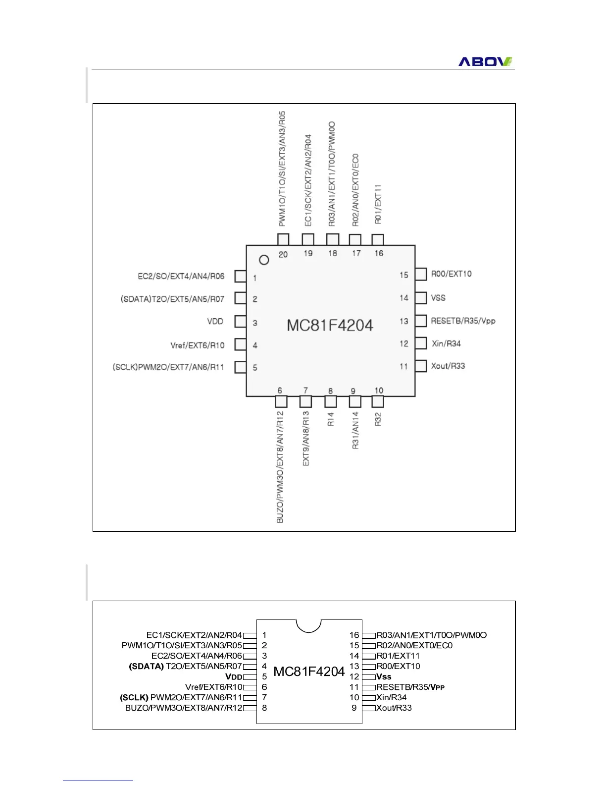 ABOV SEMICONDUCTOR MC81F4204 - 3.2 & 3.3 Pinouts for QFN and 16-Pin Packages