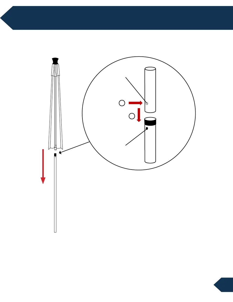 1. Press and hold the button located at the end of upper pole.