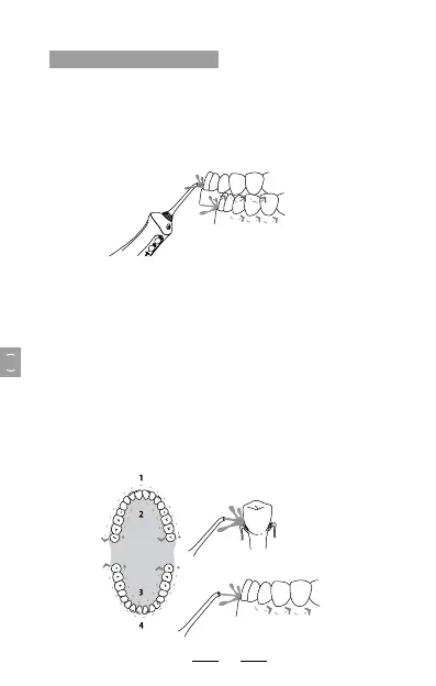lungo le gengive,facendo una pausa breve tra i denti,