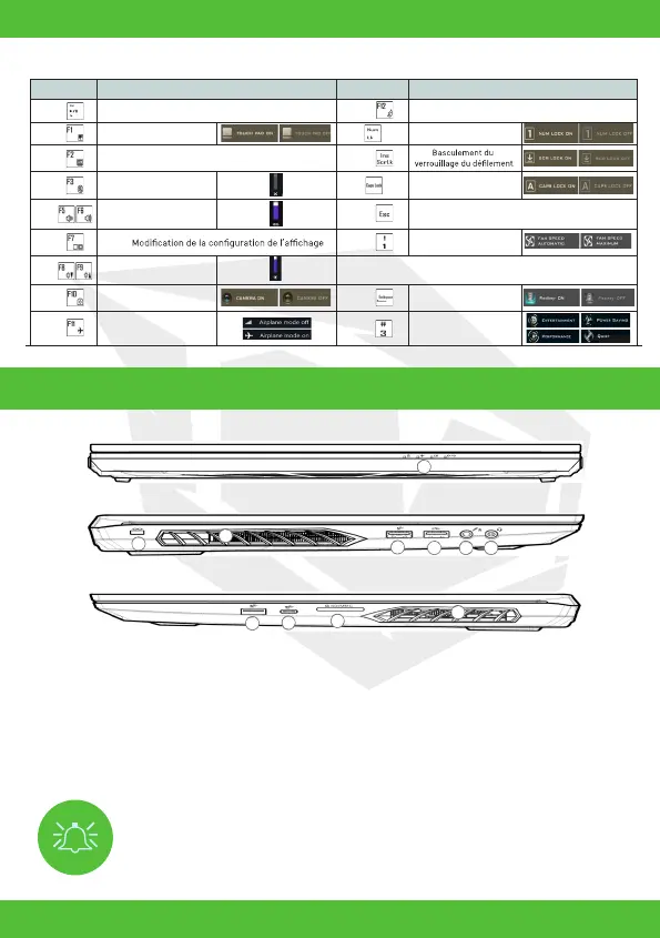 Tableau 3 - Touches de fonction et indicateurs visuels