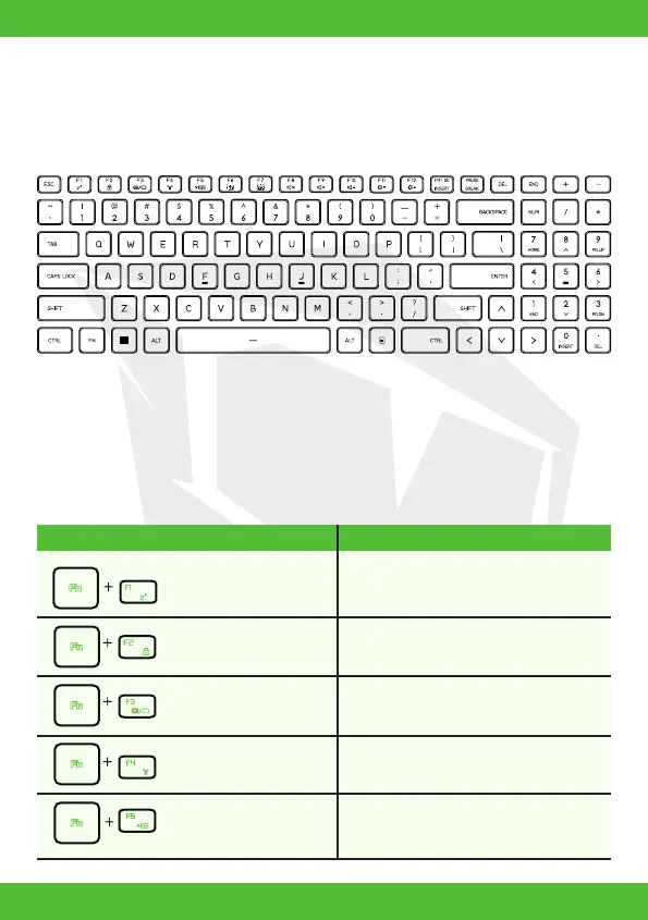 The following defnes the colored hot keys on the Keyboard. The colored com-