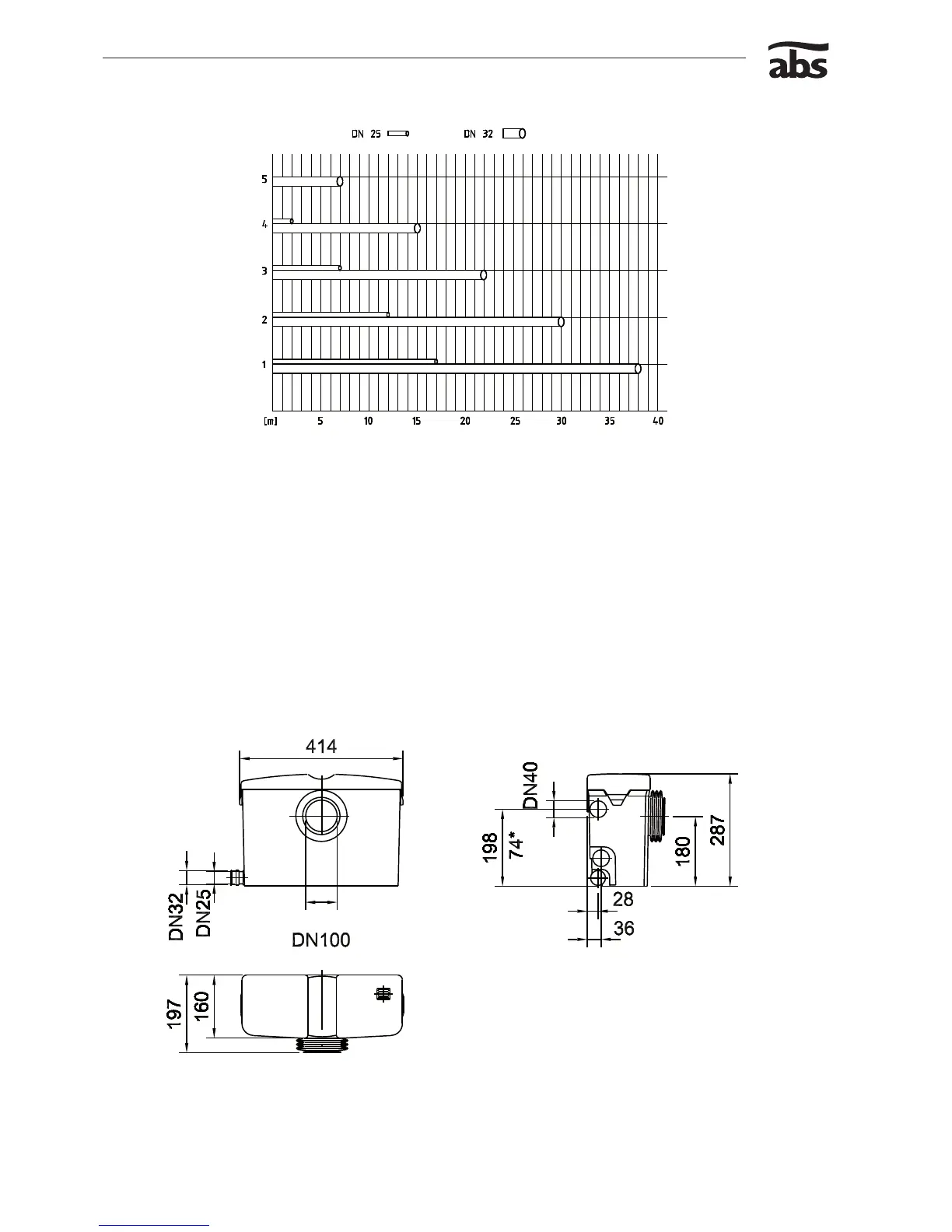Figure 1 Maximum discharge line lengths for the optimum functioning of the unit.