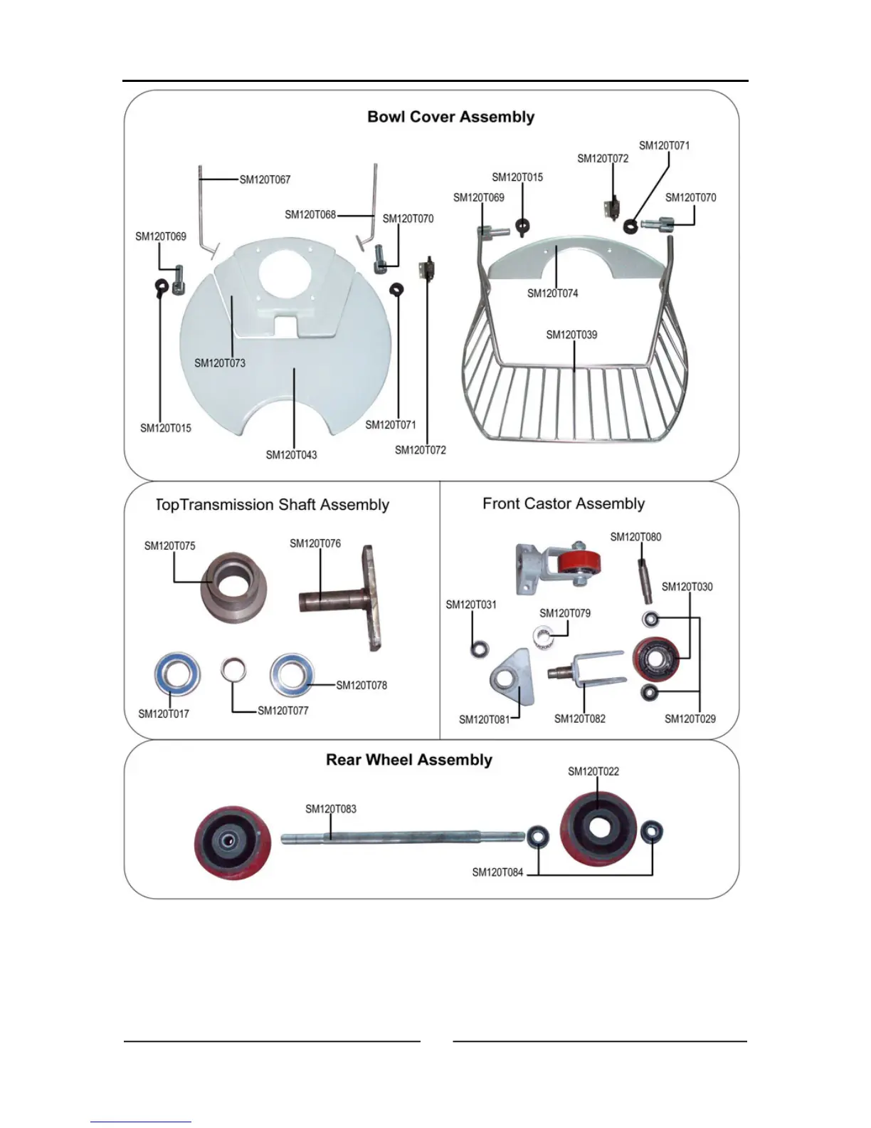 ABS ABSFBM-120T - Parts List - Assemblies 3; Cover, Transmission, Castor, and Wheel Parts