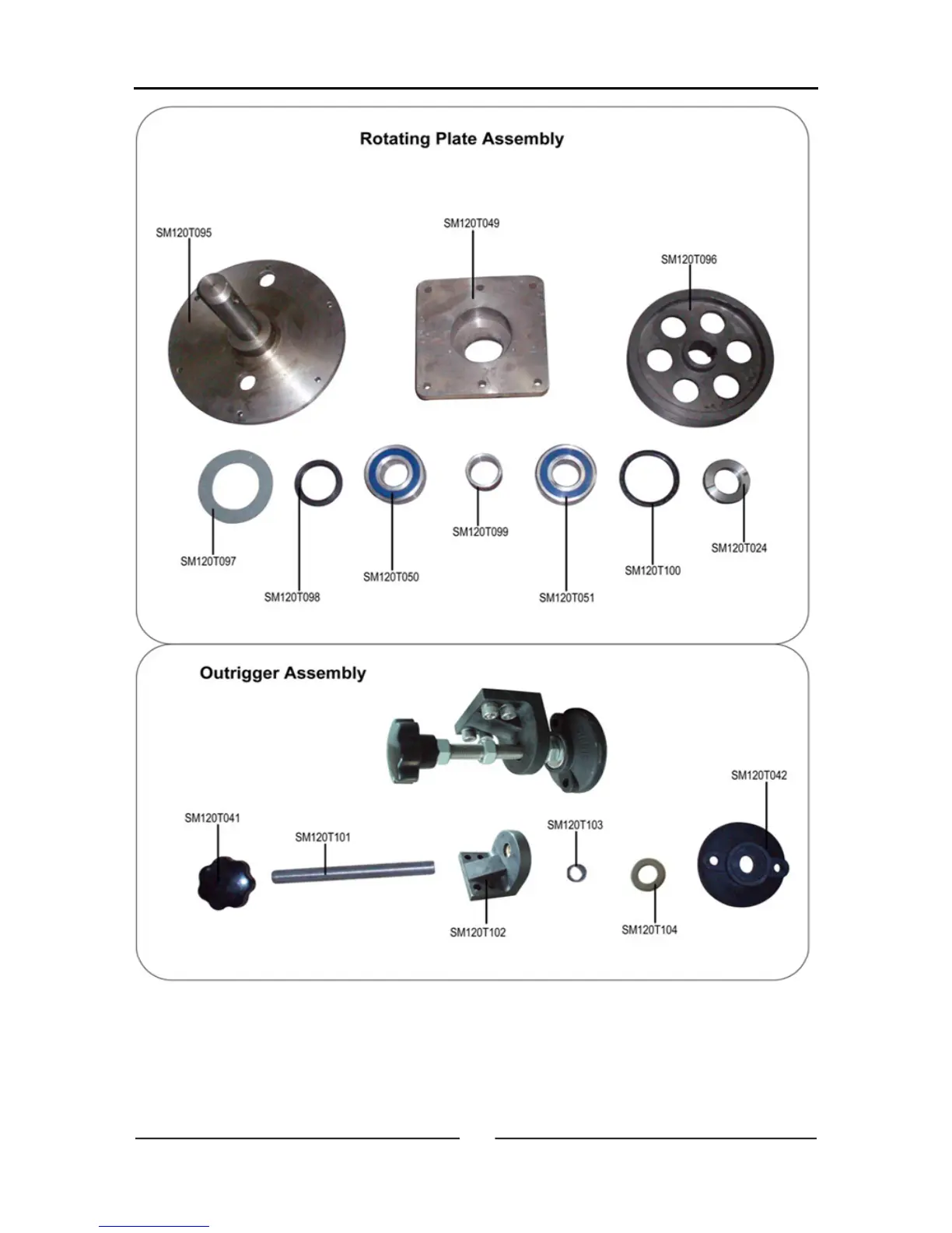 ABS ABSFBM-120T - Parts List - Assemblies 5; Rotating Plate and Outrigger Parts