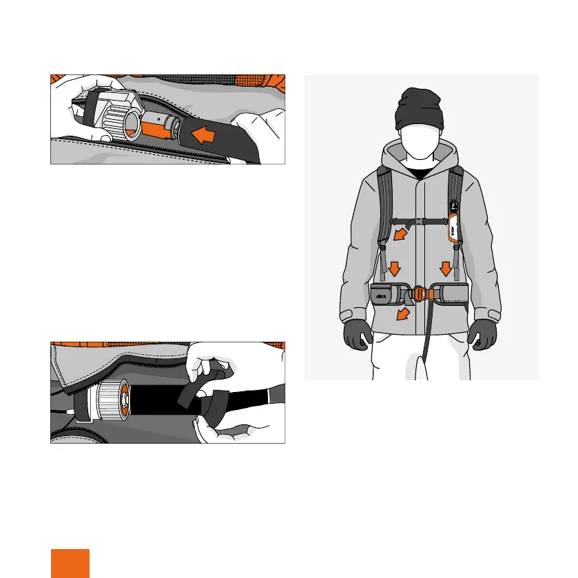 Attach the inflator to the backpack using Velcro.