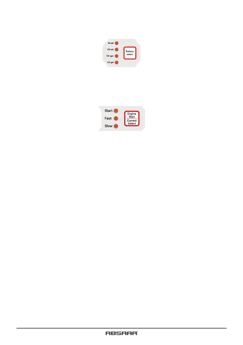 6. Bouton de sélection de la charge de batterie. Selon la batterie raccordée, vous pouvez presser