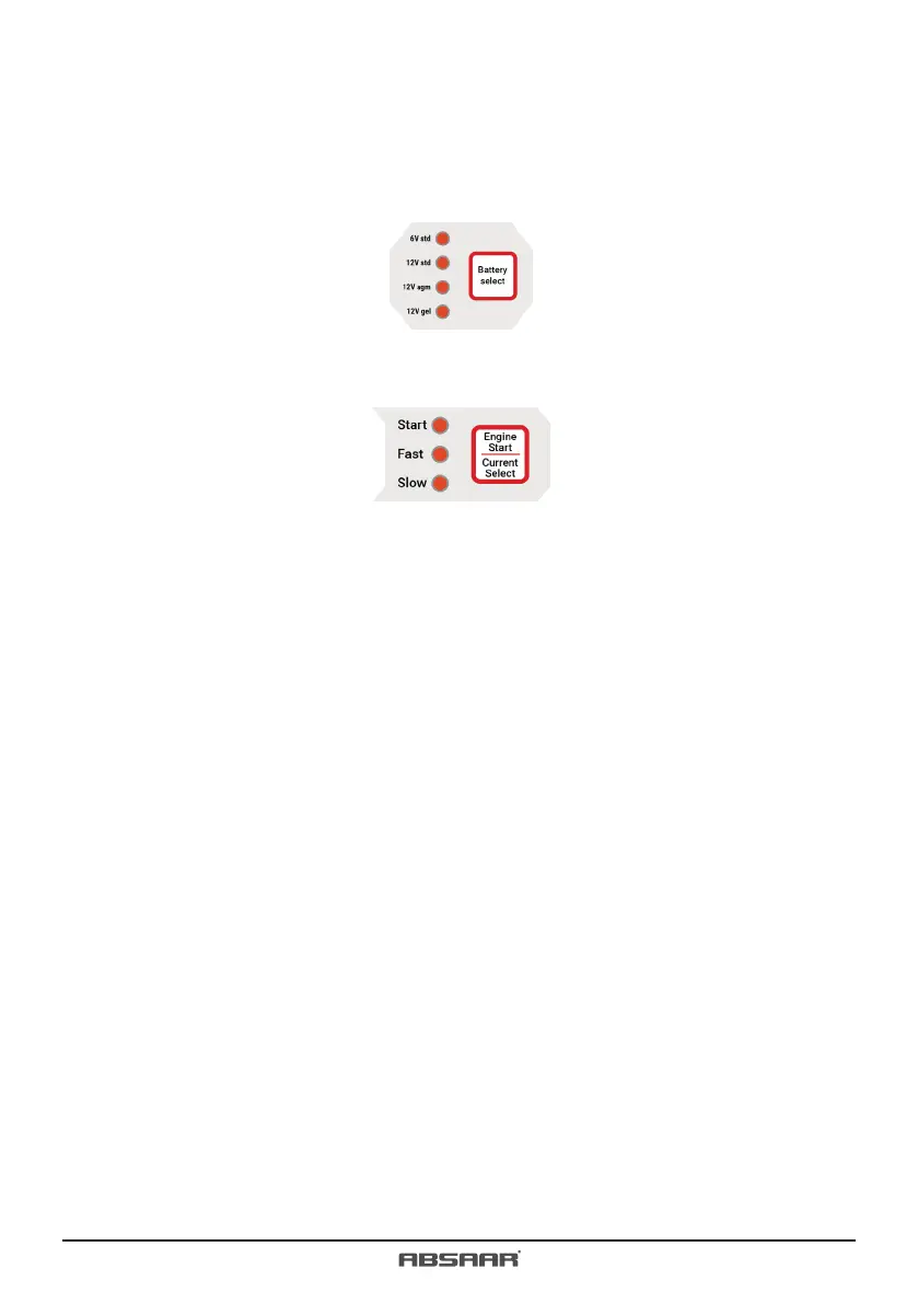 d. Druk op de knop «BATTERY SELECT».De gebruiker kan het accutype kiezen dat hij moet opladen.
