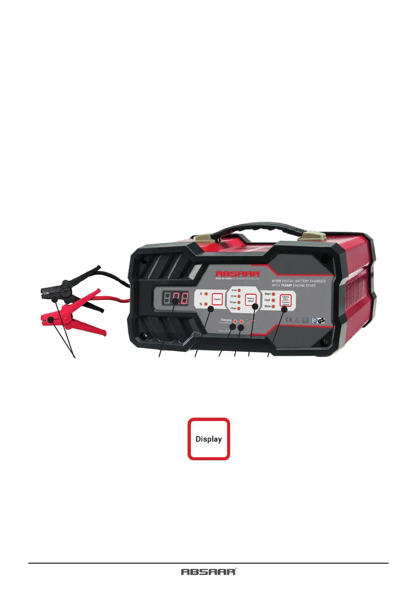 »Battery« za izbiro med različnimi tipi baterij in napetostjo polnjenja 6 V ali 12 V. Če izberete napačno