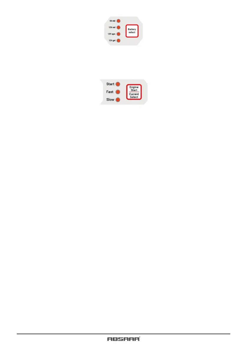 d. Pritisnite gumb »BATTERY SELECT«. Uporabnik lahko izbere tip baterije, ki jo želi napolniti. (Npr.