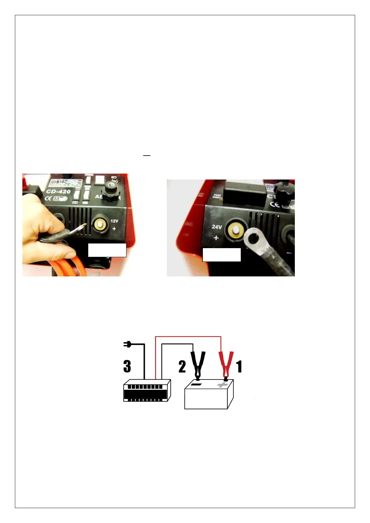 - Placer le câble rouge sur la borne 12 volts ou 24 volts du chargeur en fonction de la tension désirée, puis serrer