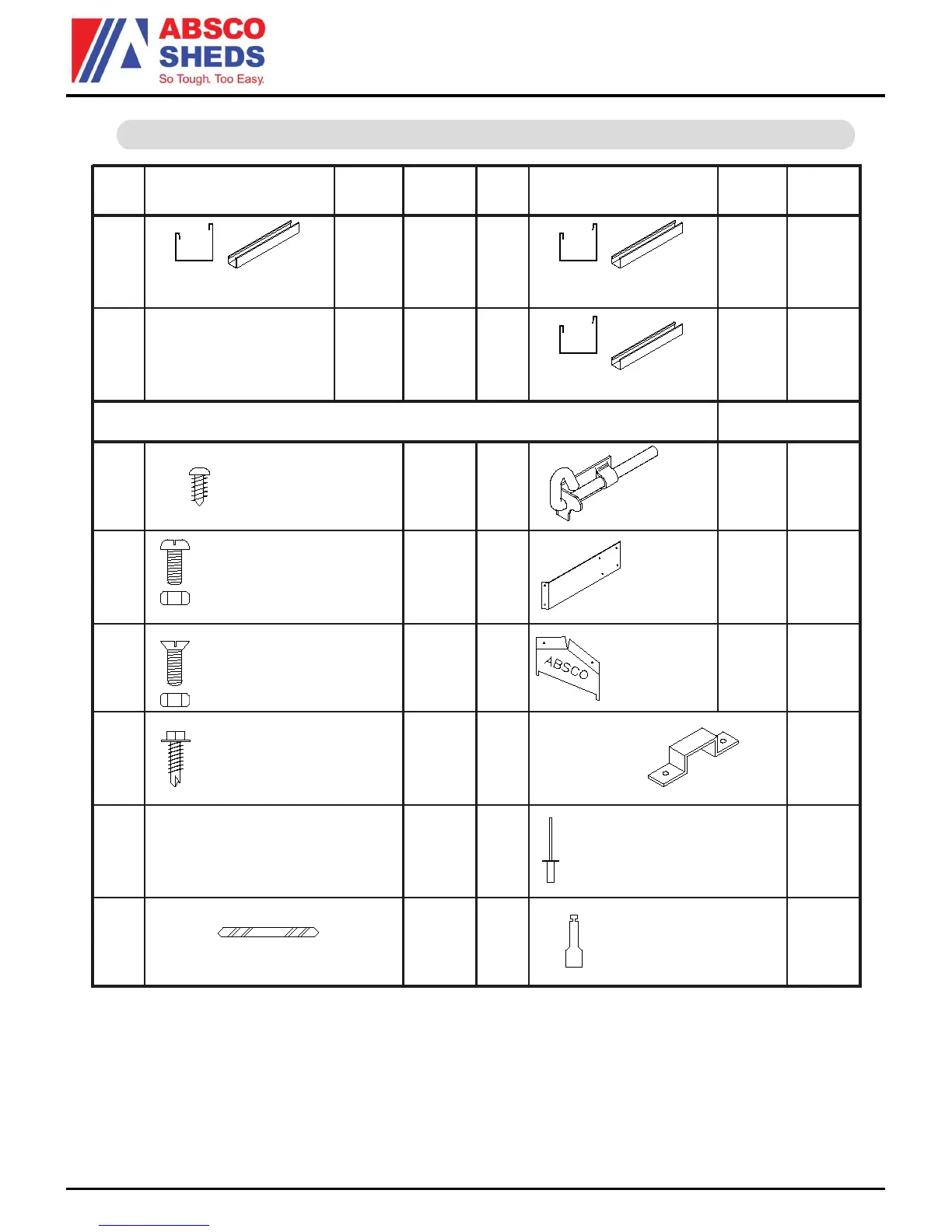 Absco 30302GK - FITTINGS PACKET CONTENTS; Hardware Identification