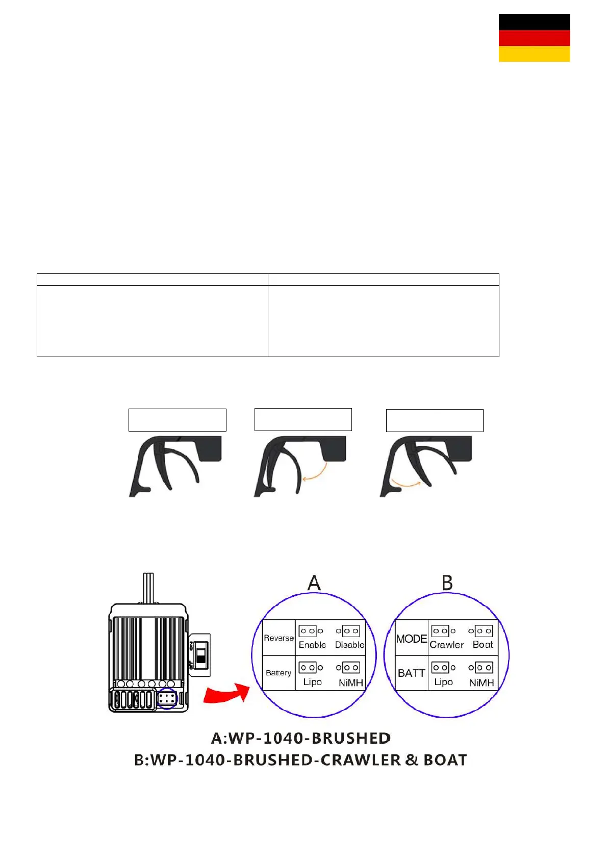 ESC zu kalibrieren, schalten Sie bitte den Sender ein, belassen Sie den Gashebel in seiner neutralen Position und warten Sie 3