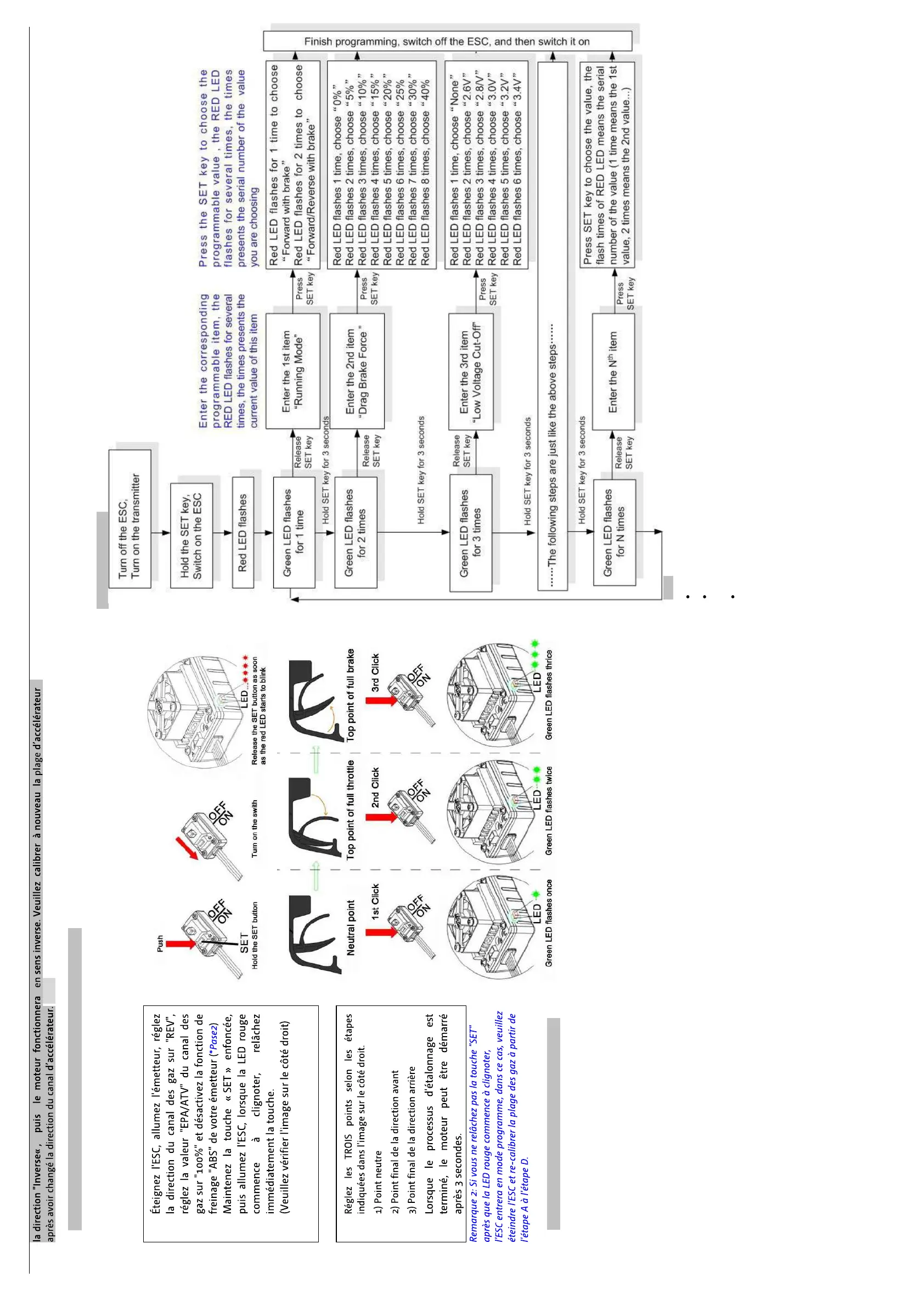 Afin que l’ESC corresponde à la plage d’accélérateurs, vous devez l’étalonner lorsque vous commencez à utiliser un nouvel ESC, ou