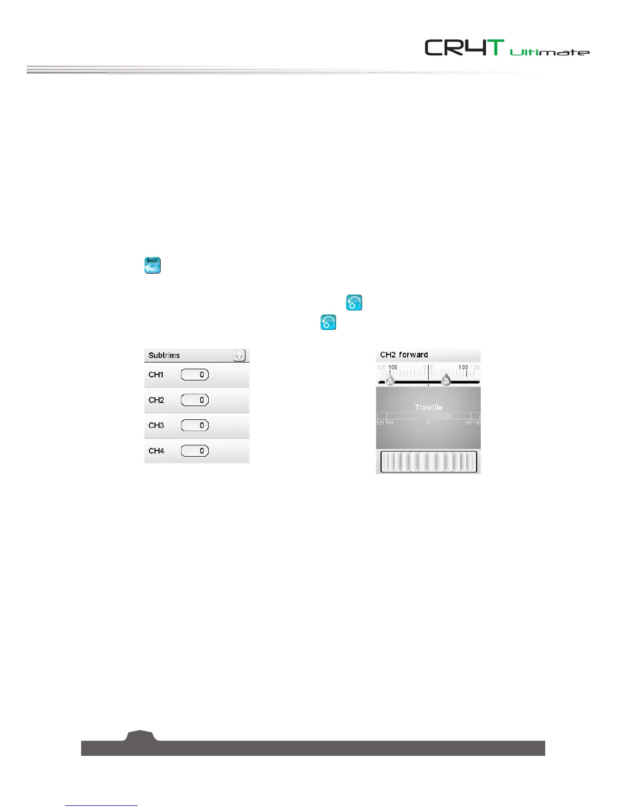 Channel List Subtrim setting and channel's current position