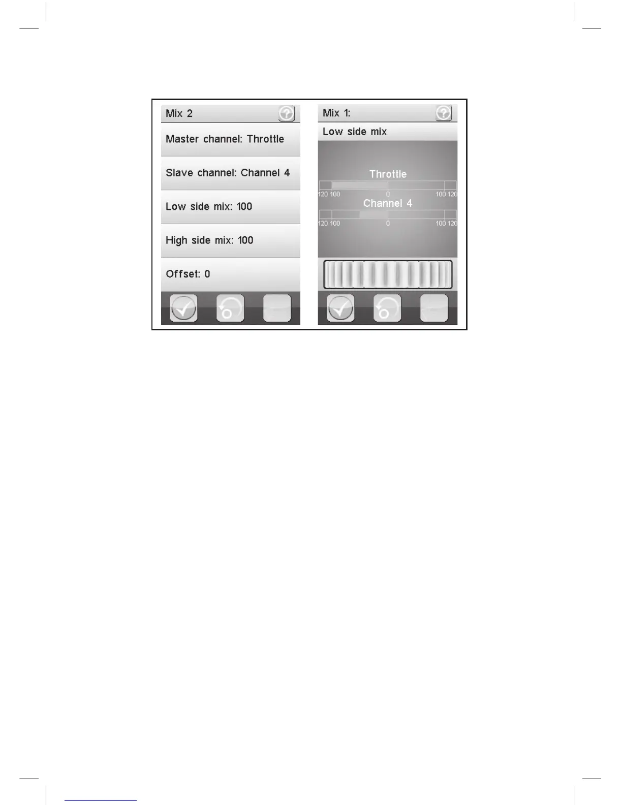 Here the influence of the right master channel is mixed on the slave channel. A value of 50% shares of the