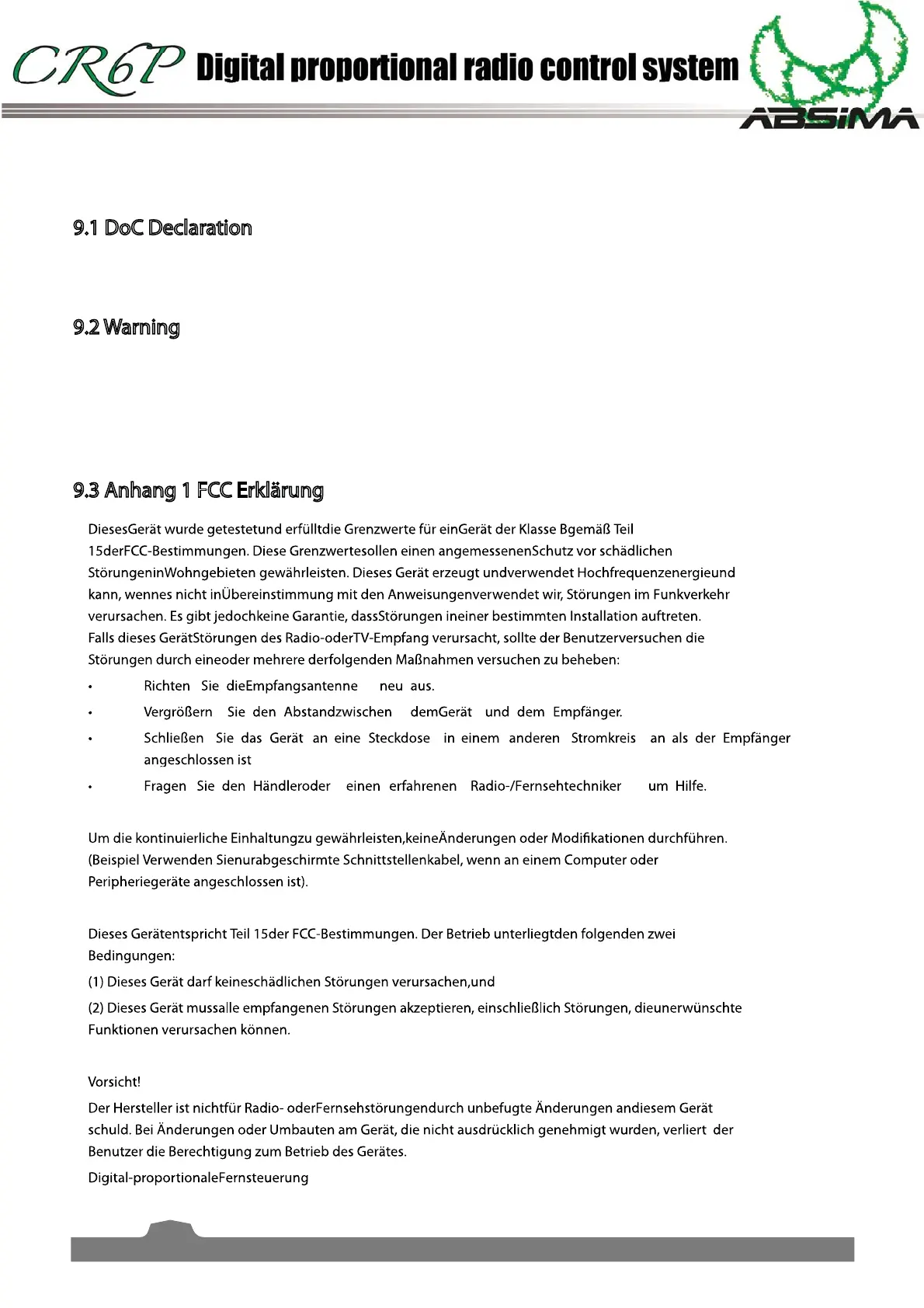 Hiermit erklärt ( Absima GmbH) das, die Fernsteuerung (CR6P) dem RED 2014/53/EU. entspricht.