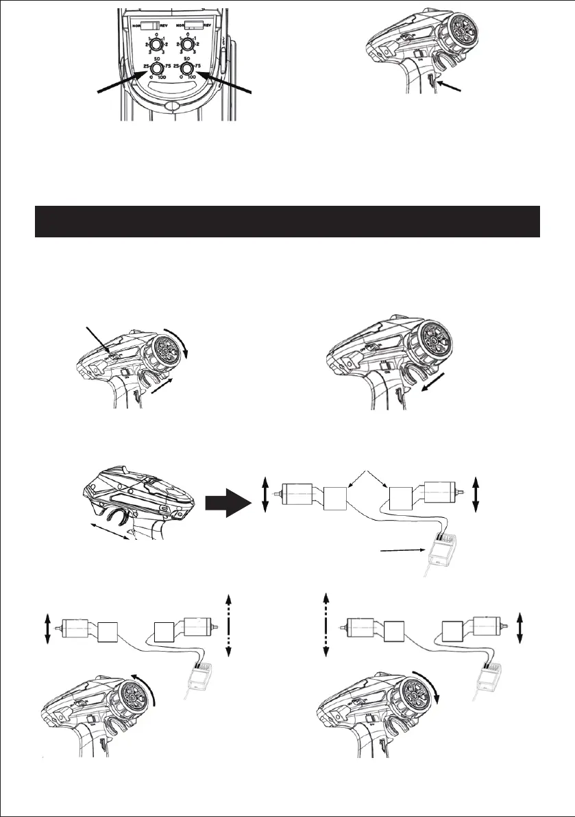 En mode Mix, si vous connectez les deux lignes de signal ESC aux canaux 1 et 2 du récepteur, la gâchette se