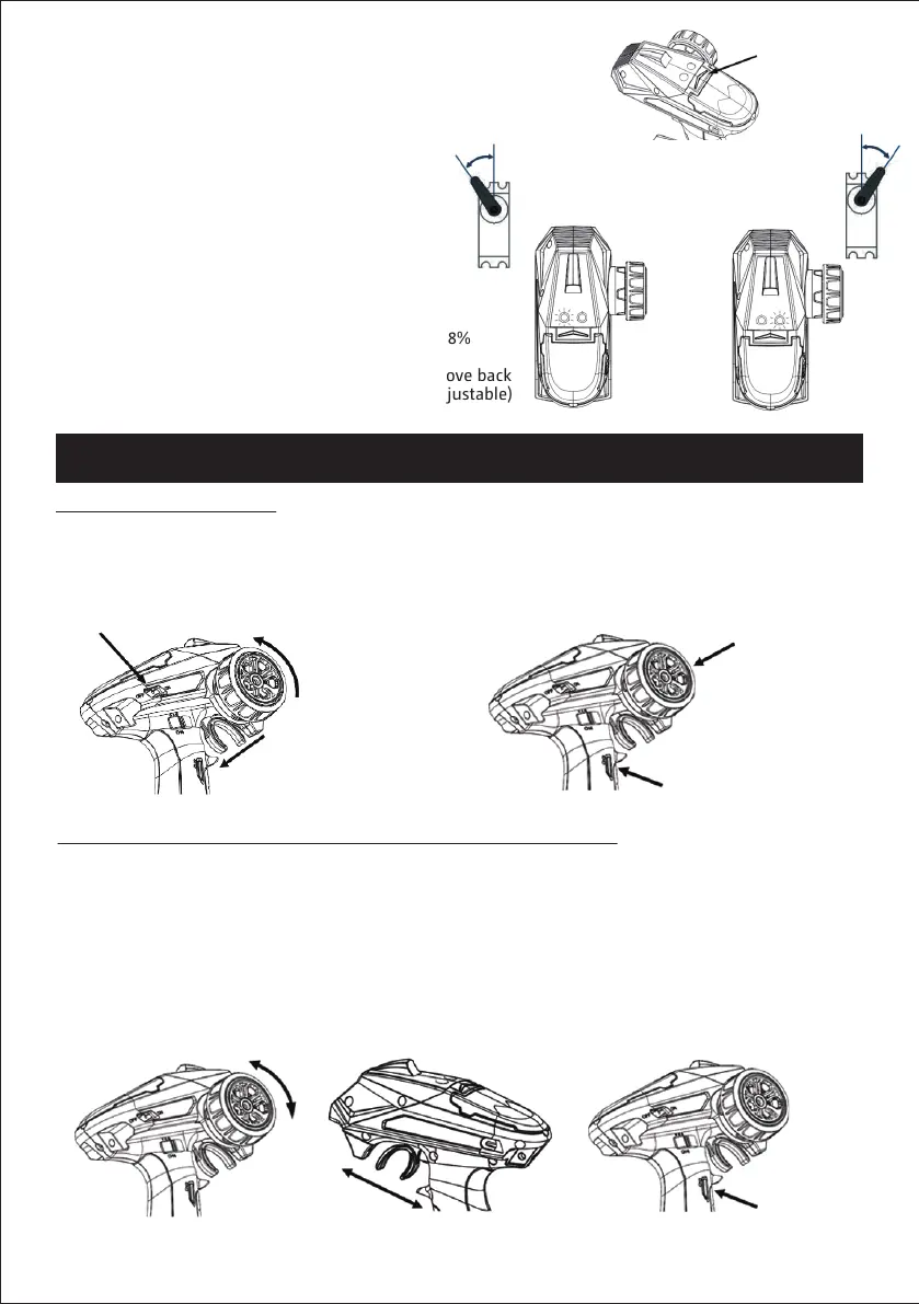 Before power on transmitter, turn wheel backward to the maximum, at the same time pull the trigger