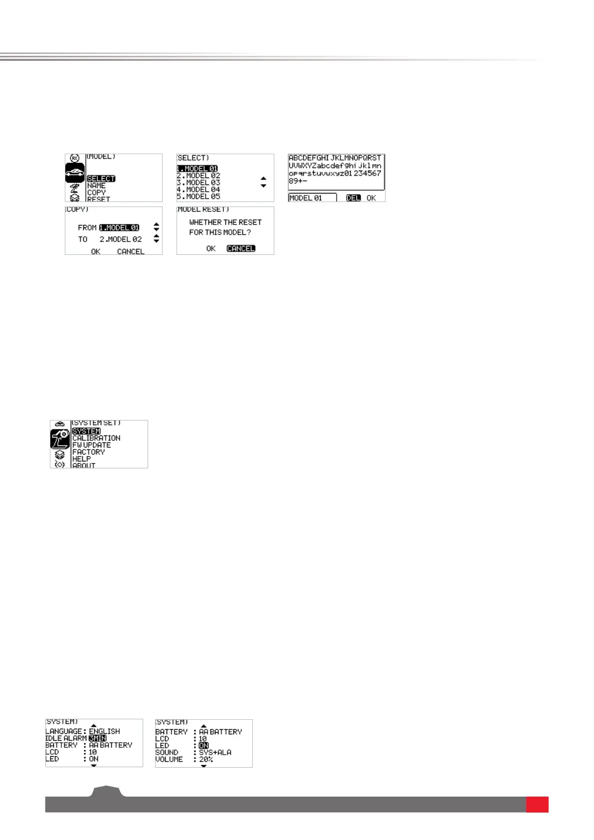 1. dans le menu de fonction SYS, sélectionnez le sous-menu SYSTEM et appuyez sur la touche OK.