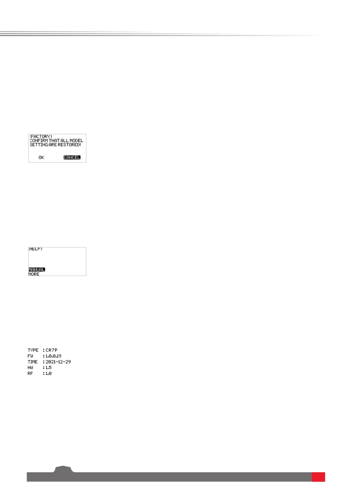Le sous-menu "ABOUT" permet d'afficher des informations sur le micrologiciel et le matériel du