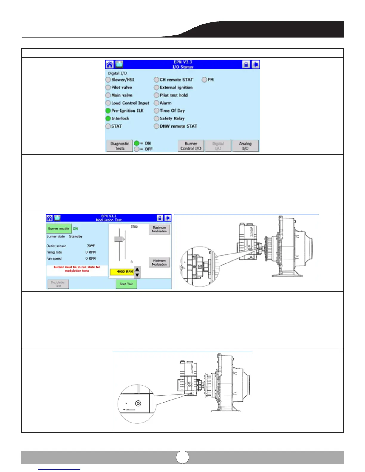 3. Touch the Diagnostics test button, screen changes to the Modulating Test window