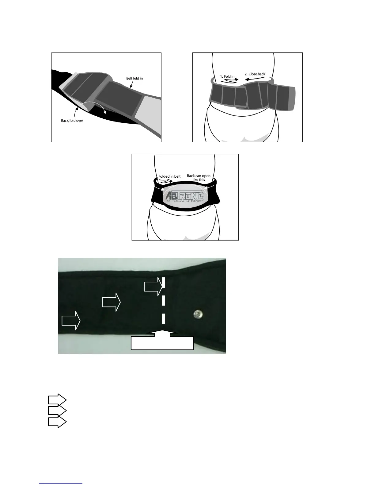 1)Open back & fold in belt 2)Back view while wearing belt