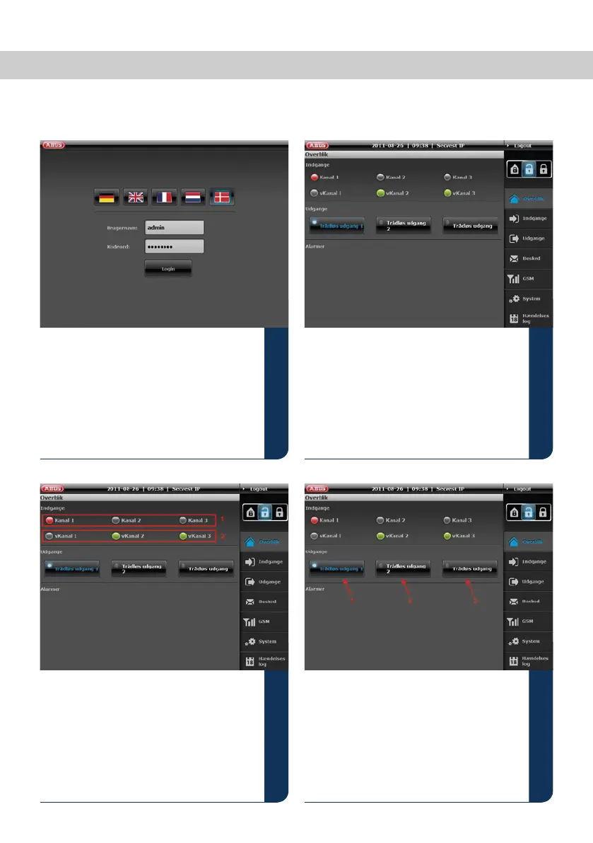 trådløse udgange (1 og 2) og relæudgangen (3).