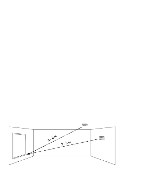 Najlepsze ustawienie to ok. 2-3 metry od powierzchni szkła.