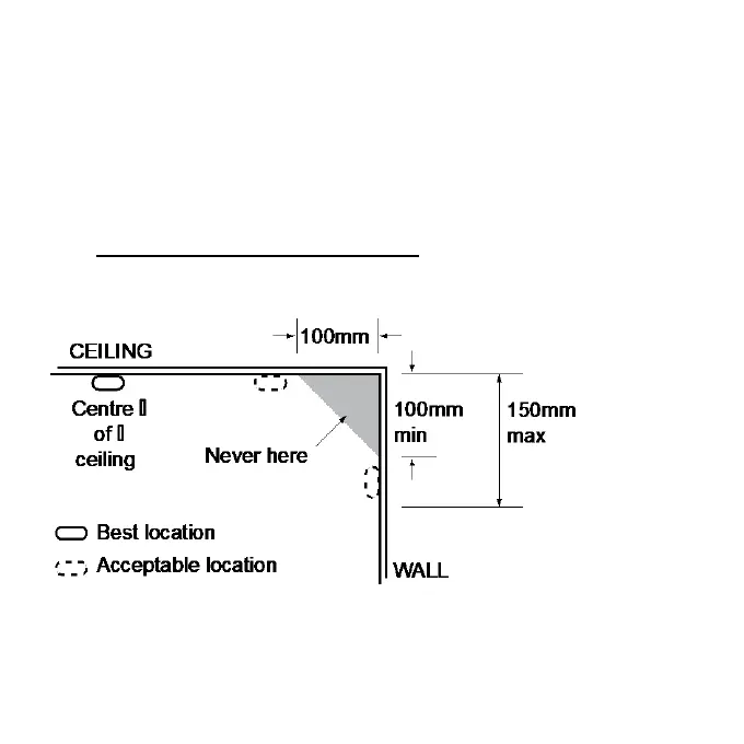 Non installare il rilevatore in punti che possono essere raggiunti solo lentamente dal fumo. Evitare i punti