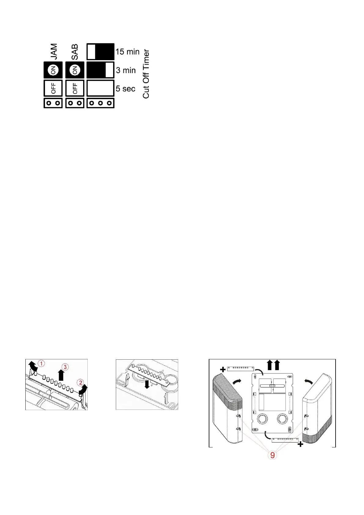 Jumper removed: SAB off – No self-set when tamper contact is open, but the control unit is still informed.