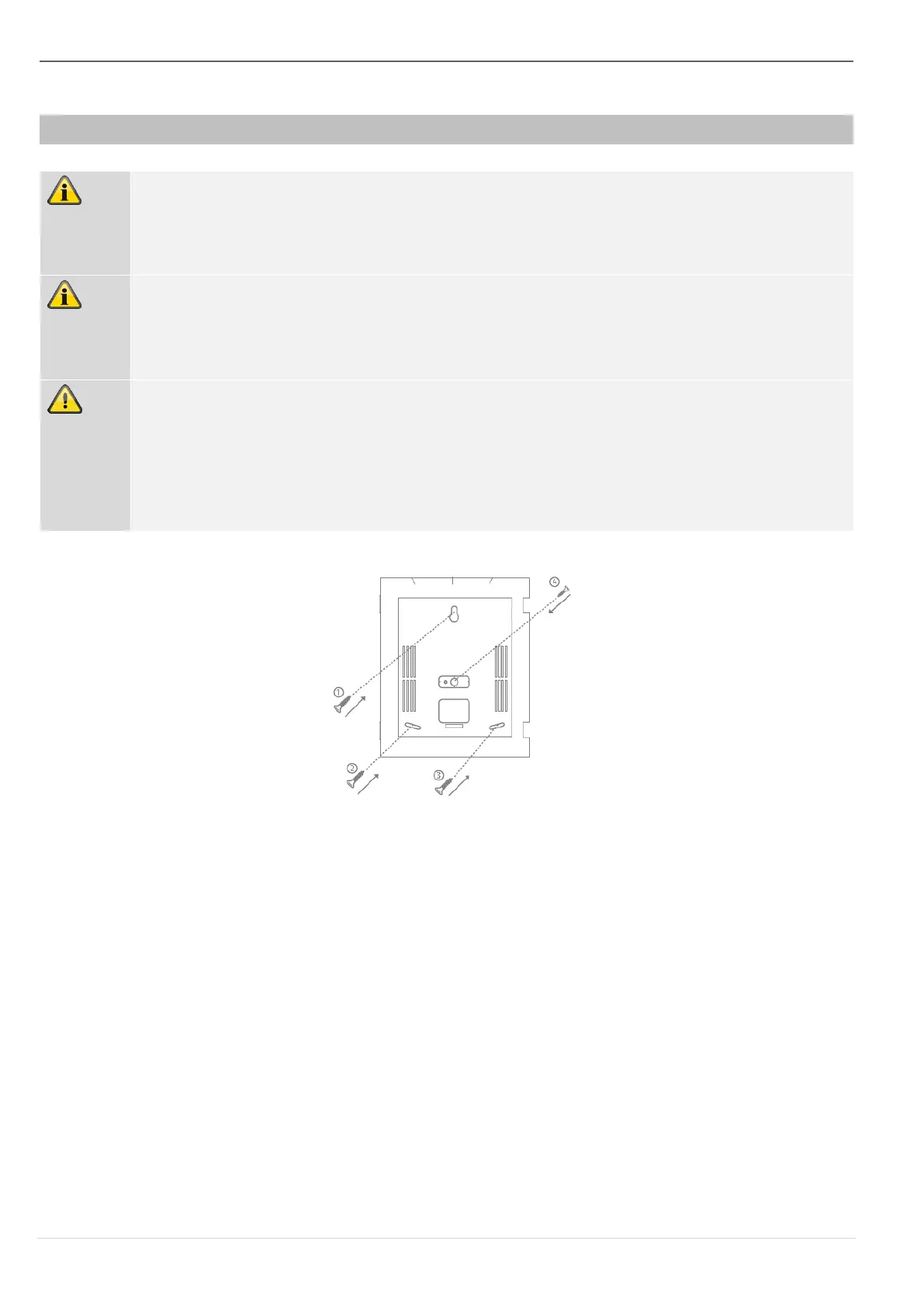 • Insert the supplied screws through the sounder’s fixing holes. Turn the screws in the screw